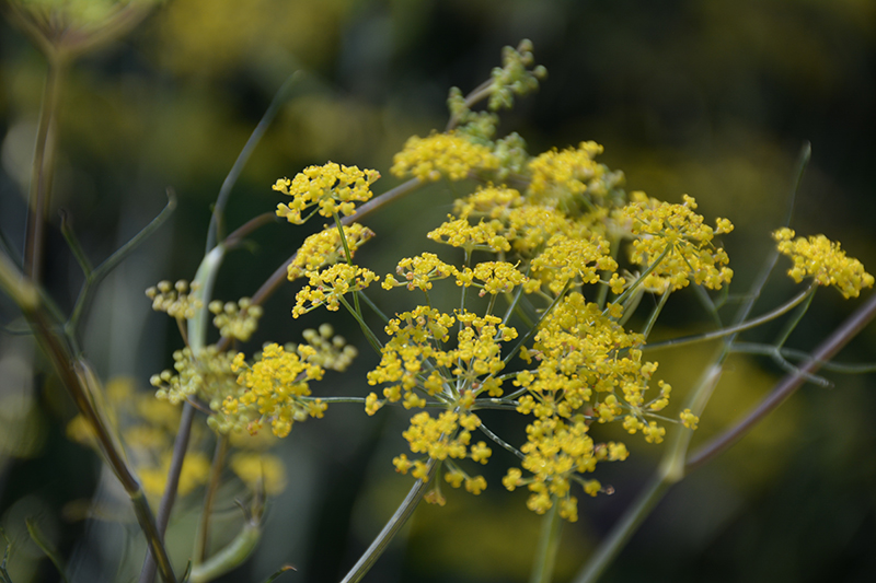 Bronze Fennel has masses of beautiful yellow flat-top flowers held atop the stems in mid summer, which are most effective when planted in groupings. The flowers are excellent for cutting. Its attractive fragrant ferny leaves emerge burgundy in spring, turning bluish-green in color with showy coppery-bronze variegation and tinges of purple throughout the season.