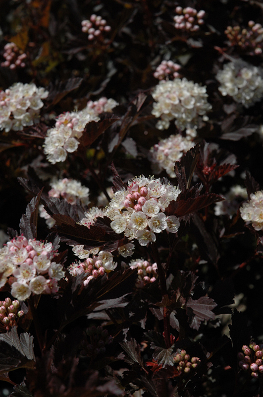 Tiny Wine® Ninebark features showy clusters of white flowers at the ends of the branches from late spring to early summer, which emerge from distinctive pink flower buds. It has attractive deep purple deciduous foliage which emerges crimson in spring. The serrated lobed leaves are highly ornamental and turn an outstanding red in the fall. It features abundant showy red capsules from early to mid fall. The peeling tan bark and dark red branches add an interesting dimension to the landscape.