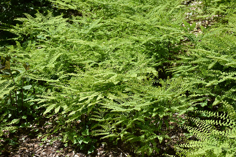 Northern Maidenhair Fern is primarily valued in the garden for its cascading habit of growth. Its crinkled ferny compound leaves are light green in color. As an added bonus, the foliage turns a gorgeous gold in the fall. The black stems are very colorful and add to the overall interest of the plant.