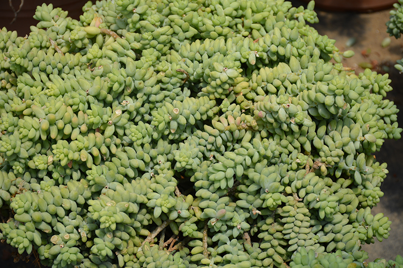When grown indoors, Burro's Tail can be expected to grow to be about 12 inches tall at maturity, with a spread of 24 inches. It grows at a medium rate, and under ideal conditions can be expected to live for approximately 15 years. This houseplant will do well in a location that gets either direct or indirect sunlight, although it will usually require a more brightly-lit environment than what artificial indoor lighting alone can provide. It is very adaptable to both dry and moist soil, but will not tolerate any standing water. The surface of the soil shouldn't be allowed to dry out completely, and so you should expect to water this plant once and possibly even twice each week. Be aware that your particular watering schedule may vary depending on its location in the room, the pot size, plant size and other conditions; if in doubt, ask one of our experts in the store for advice. It is not particular as to soil pH, but grows best in poor soil. Contact the store for specific recommendations on pre-mixed potting soil for this plant.