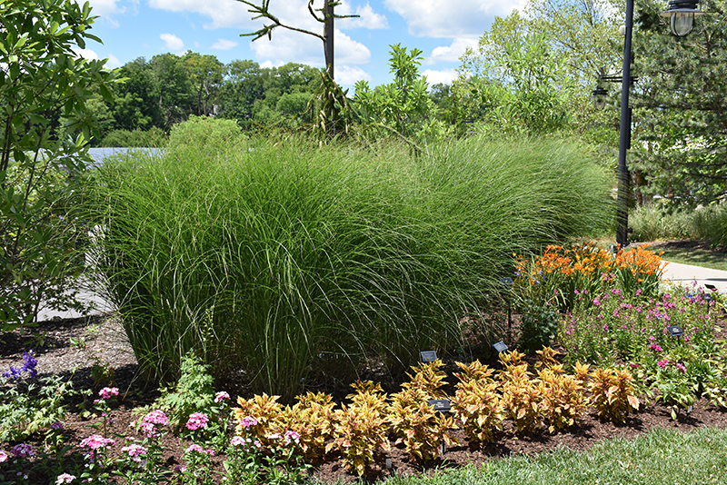 Scout™ Maiden Grass will grow to be about 5 feet tall at maturity, with a spread of 5 feet. It tends to be leggy, with a typical clearance of 1 foot from the ground, and should be underplanted with lower-growing perennials. It grows at a medium rate, and under ideal conditions can be expected to live for approximately 20 years. As an herbaceous perennial, this plant will usually die back to the crown each winter, and will regrow from the base each spring. Be careful not to disturb the crown in late winter when it may not be readily seen!