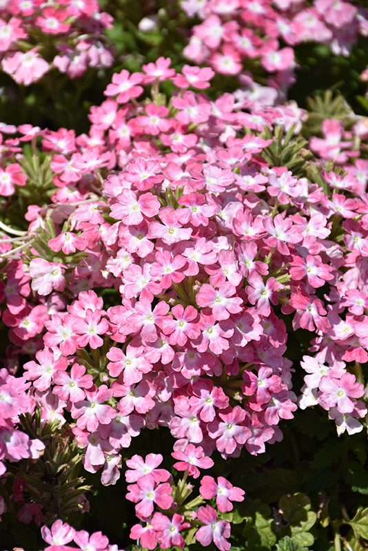EnduraScape™ Pink Fizz Verbena will grow to be about 12 inches tall at maturity, with a spread of 24 inches. When grown in masses or used as a bedding plant, individual plants should be spaced approximately 18 inches apart. Its foliage tends to remain dense right to the ground, not requiring facer plants in front. It grows at a fast rate, and under ideal conditions can be expected to live for approximately 3 years. As an herbaceous perennial, this plant will usually die back to the crown each winter, and will regrow from the base each spring. Be careful not to disturb the crown in late winter when it may not be readily seen!