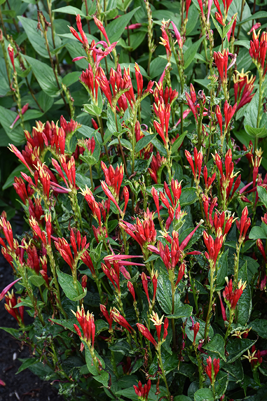 A beautiful woodland plant producing deep crimson red tubular flowers with starry yellow tips and throats; avoid transplanting once established; excellent for border fronts, bright shade areas, and containers; deadhead to promote re-blooming in summer