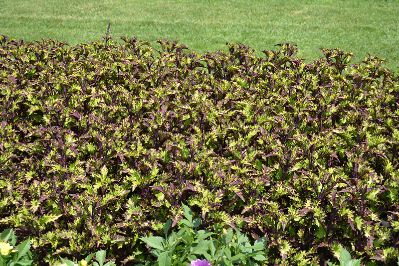 Rodeo Drive Coleus' attractive serrated pointy leaves remain lime green in color with distinctive deep purple edges throughout the year on a plant with an upright spreading habit of growth.