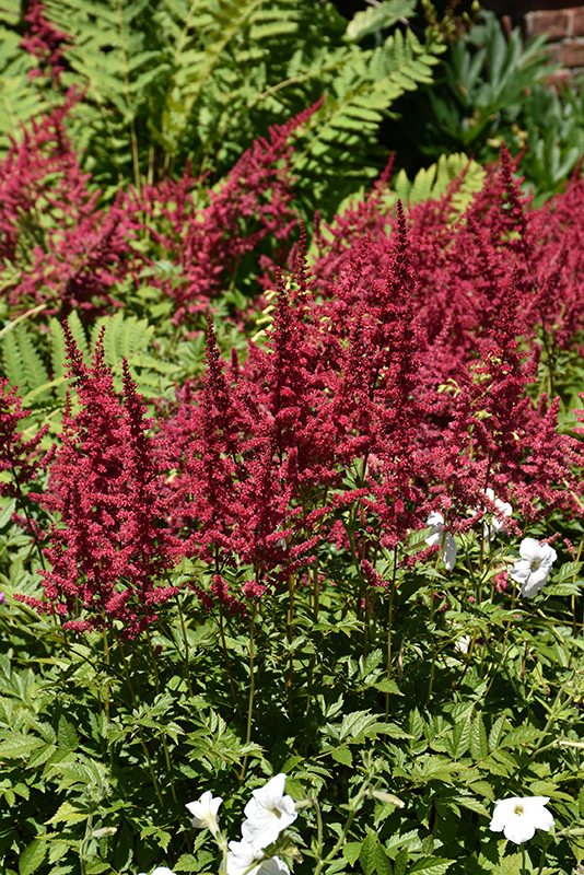 Red Sentinel Astilbe has masses of beautiful plumes of red flowers at the ends of the stems in mid summer, which are most effective when planted in groupings. The flowers are excellent for cutting. Its ferny compound leaves emerge coppery-bronze in spring, turning dark green in color throughout the season.