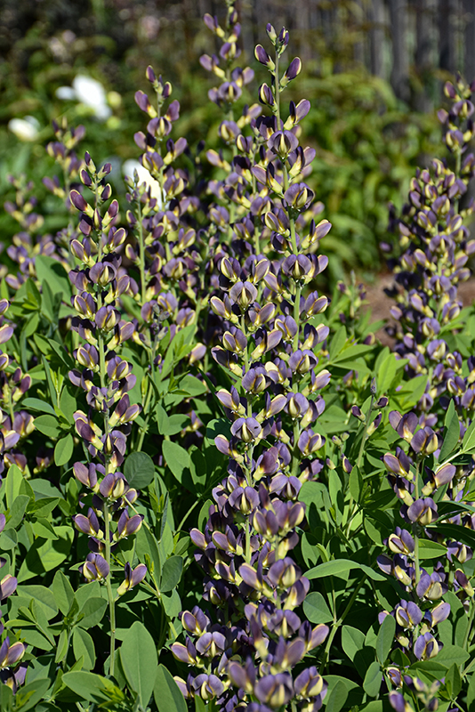 Twilite Prairieblues™ False Indigo has masses of beautiful spikes of purple pea-like flowers with yellow eyes rising above the foliage from late spring to mid summer, which are most effective when planted in groupings. The flowers are excellent for cutting. Its oval leaves remain bluish-green in color throughout the season. The fruits are showy black pods displayed in late summer.